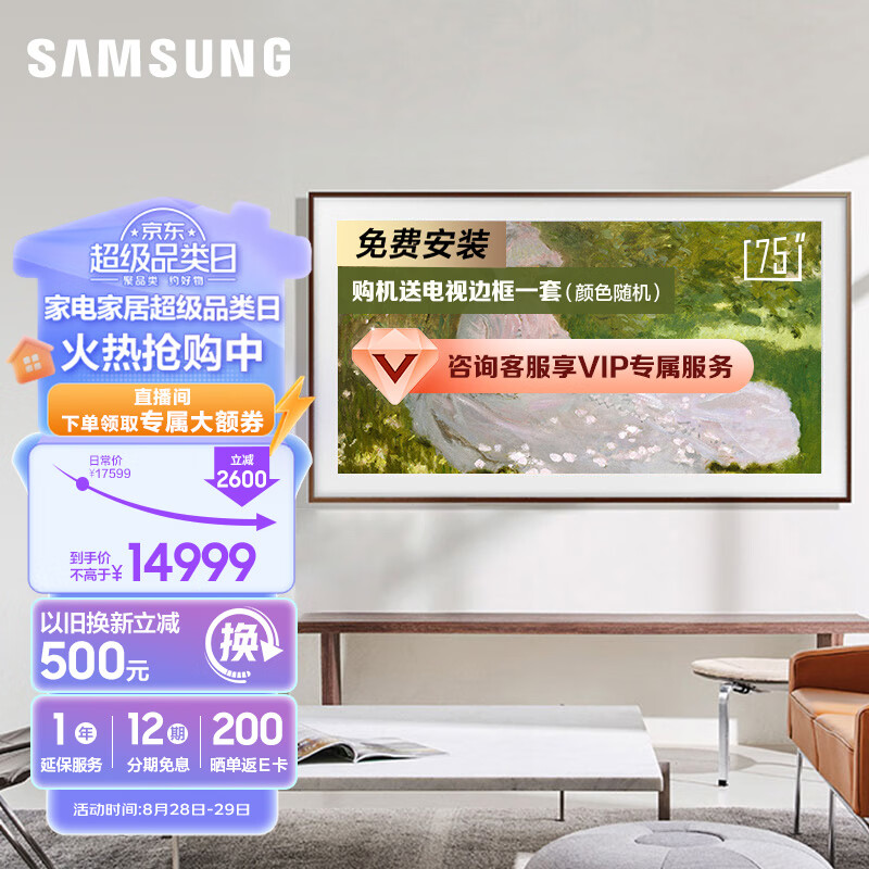 三星(SAMSUNG)75LS03C 75英寸 frame画壁艺术电视 120Hz QLED量子点 超薄4K 空间美学 QA75LS03CAJXXZ价格:14999.00元!