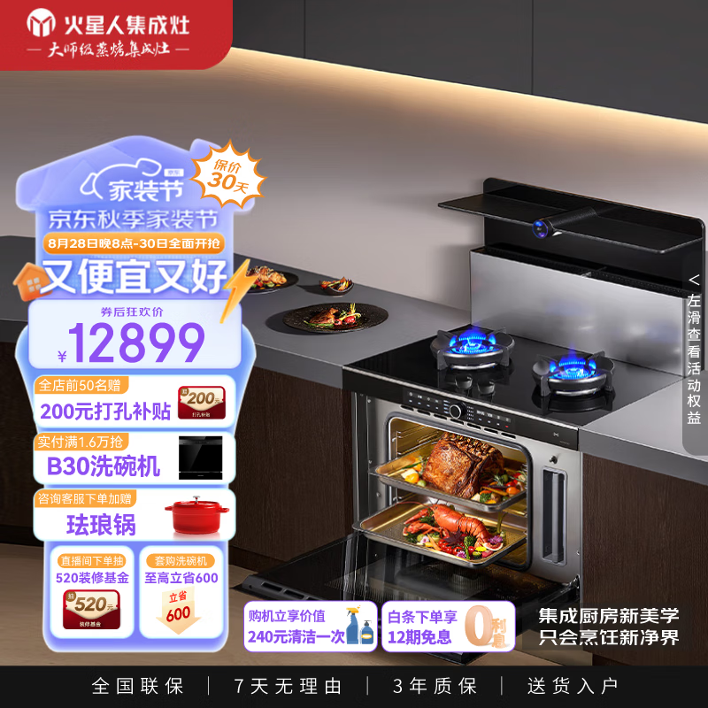 火星人集成灶T70BC 集成灶一体式 爆炒23风量大吸力抽油烟机 集成蒸烤箱一体机 4.5kW燃气灶液化气价格:12999.00元!