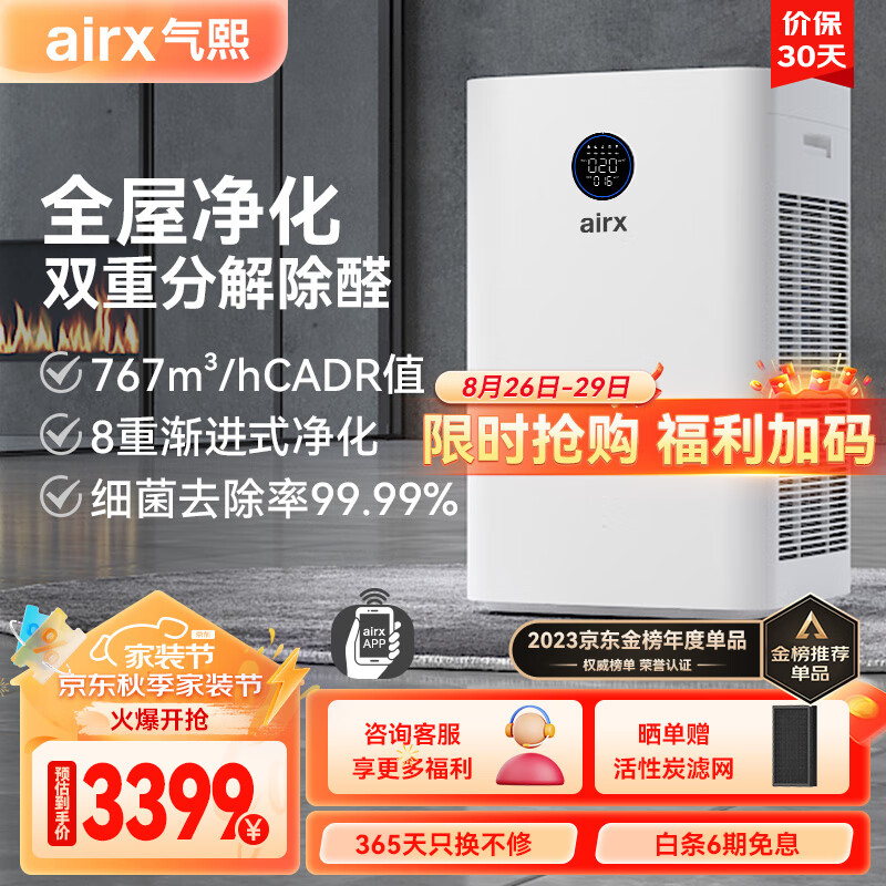 airx气熙 空气净化器 除甲醛分解除菌空气净化机雾霾异味 甲醛数值显示 净化多重污染 A10价格:3699.00元!