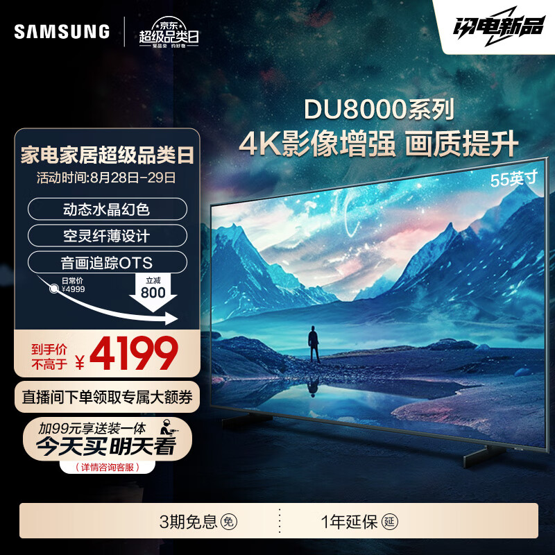 三星(SAMSUNG)55DU8000 55英寸 平板液晶AI电视 超薄4K AI智能补帧 无开机广告 UA55DU8000JXXZ价格:4199.00元!