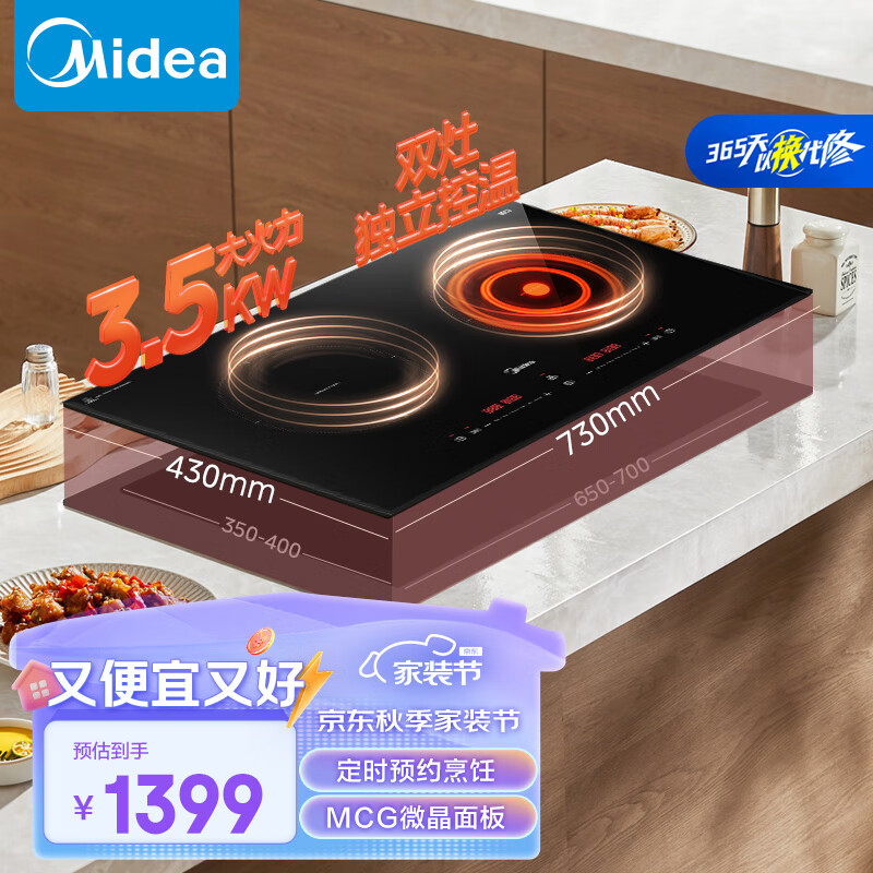 美的(Midea)电磁炉双灶电磁灶 家用大功率3500W恒温匀火嵌入式双头灶 过热保护滑触双控定时功能MC-DZ35CC10Z价格:1399.00元!