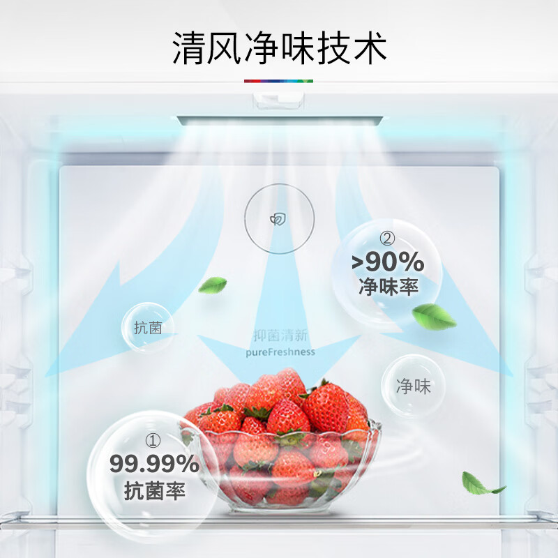 2、冰箱整体外观颜色比较好看,跟我家的柜子跟搭。十字门的里面的分区很合理,是我想要的那种。