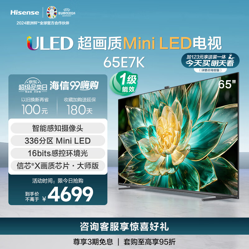 海信电视65E7K 65英寸 ULED X Mini LED 336分区 AI摄像头超感知 智慧屏 液晶智能平板电视机价格:4199.00元!