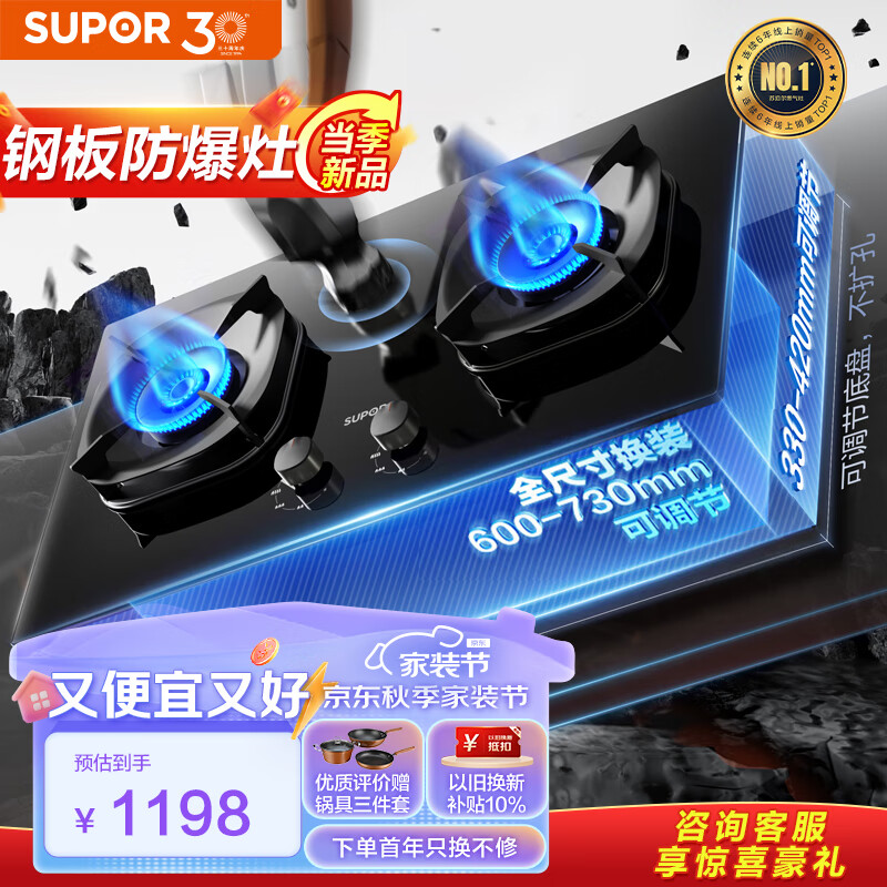 苏泊尔(SUPOR)燃气灶煤气灶双灶家用 防爆灶天然气双灶具5.2kW大火力台嵌两用易清洁 合金面板 DB59天价格:1198.00元!