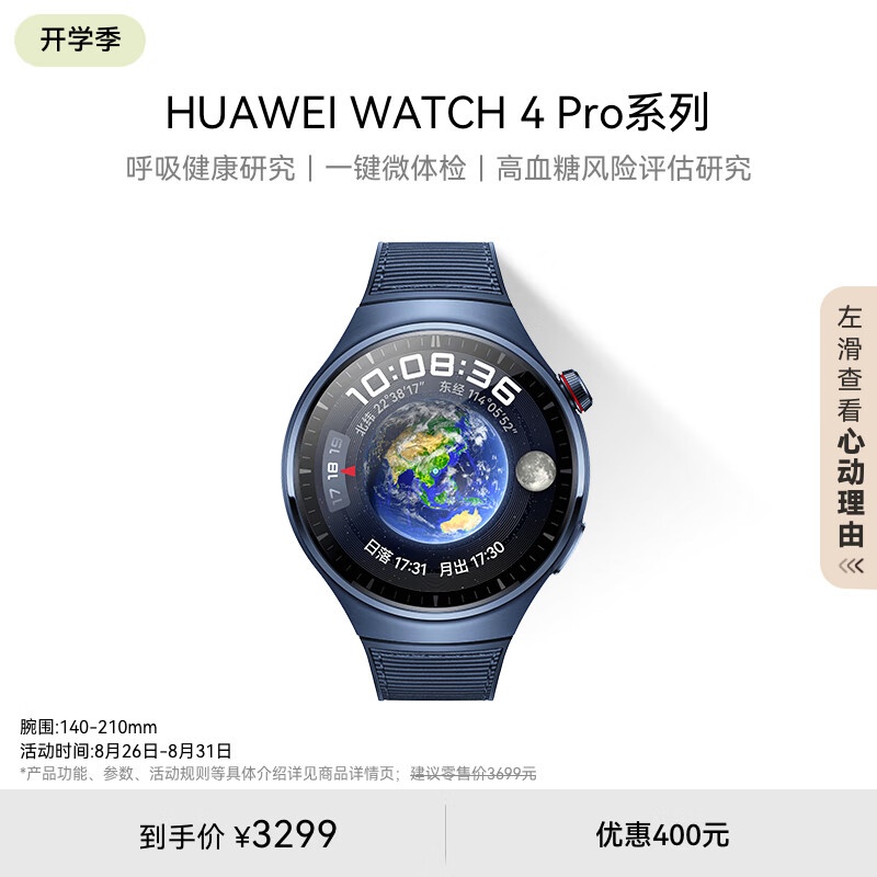 华为【送健康送男友】WATCH 4 Pro华为手表智能手表呼吸健康研究华为运动手表蔚蓝地球 男表价格:3299.00元!
