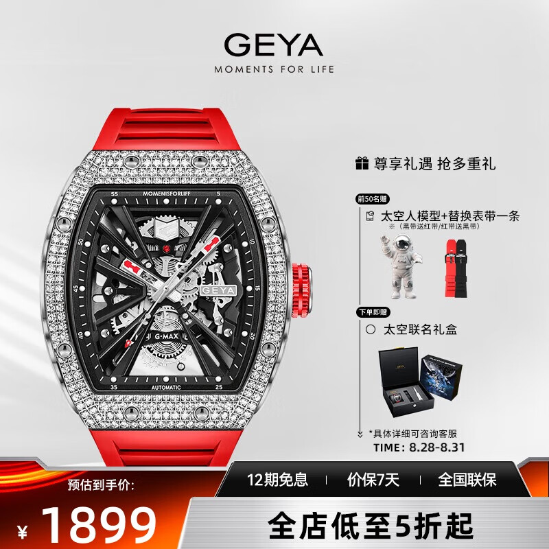 格雅(GEYA)手表男全自动镂空镶钻酒桶型品牌机械男士手表国表 送男友价格:2109.00元!