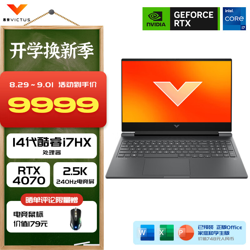 惠普(HP)光影精灵10 Victus 2024新品 16.1英寸酷睿轻薄电竞游戏本电脑 畅玩黑神话悟空 i7-14650HX 4070 1T 240Hz价格:9999.00元!