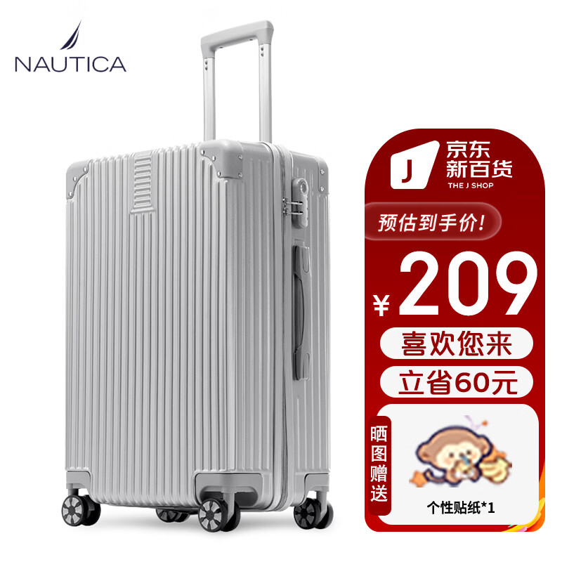NAUTICA行李箱万向轮28英寸大容量拉杆箱女士长途旅行箱拉链密码箱银色价格:269.00元!