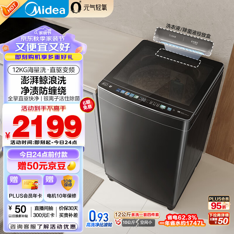 美的(Midea)波轮洗衣机全自动家用 MB120AIR3 12公斤大容量 元气轻氧系列 直驱变频 银离子活性除菌 健康除螨价格:2199.00元!