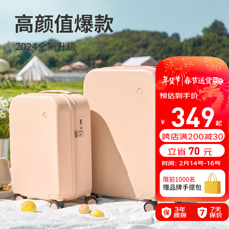 米熙拉杆箱子行李箱大容量旅行箱女密码箱行李箱包淡山茱萸粉22英寸36价格:419.00元!