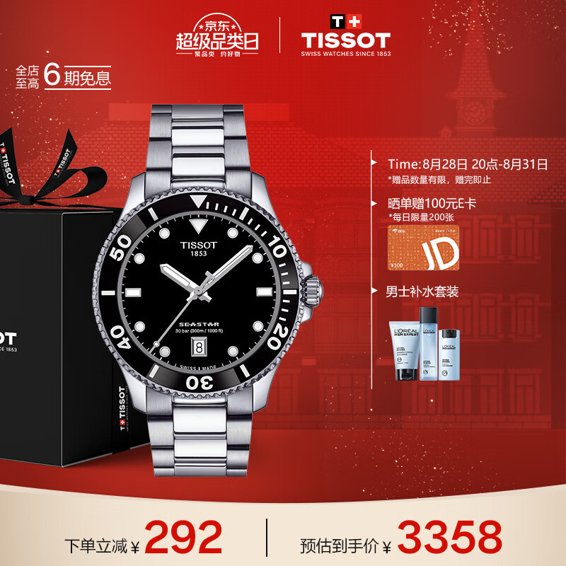 4、天梭海星手表真的质感太棒了,外圈的红色点缀好好看,质量很好,质感满分,京东运送也很给力放心!618的活动也很给力。客服解答的态度和回应速度都非常不错!