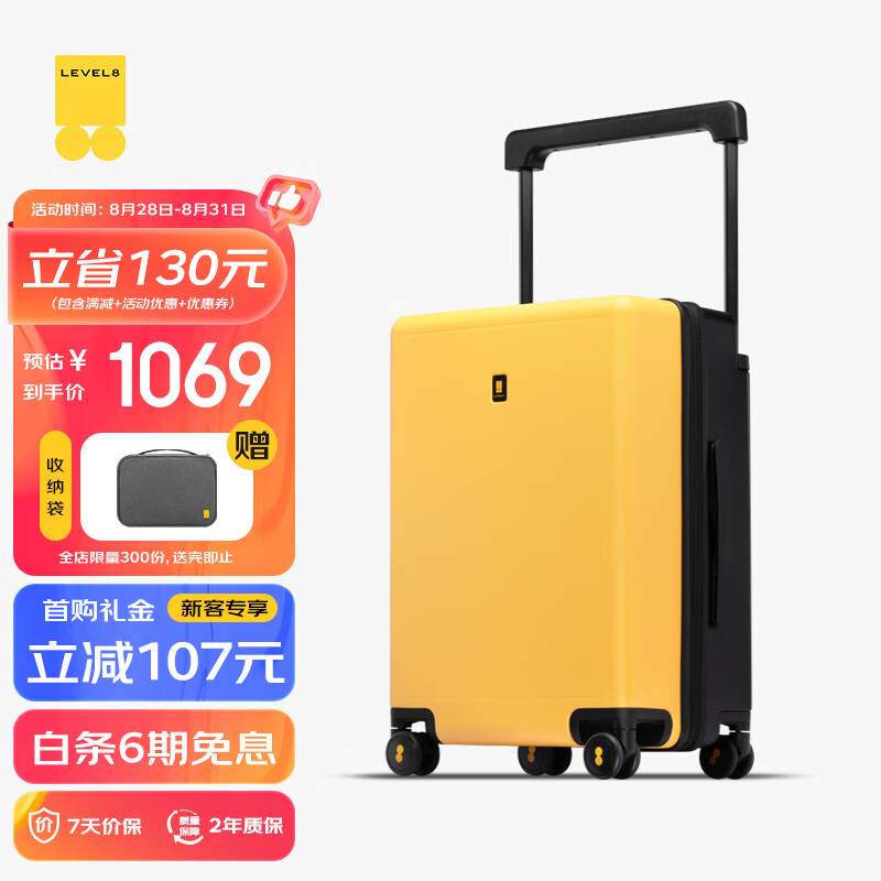 地平线8号(LEVEL8)行李箱男女密码拉杆箱大旅行家20英寸登机宽拉杆PC旅行箱黑黄拼色价格:1199.00元!