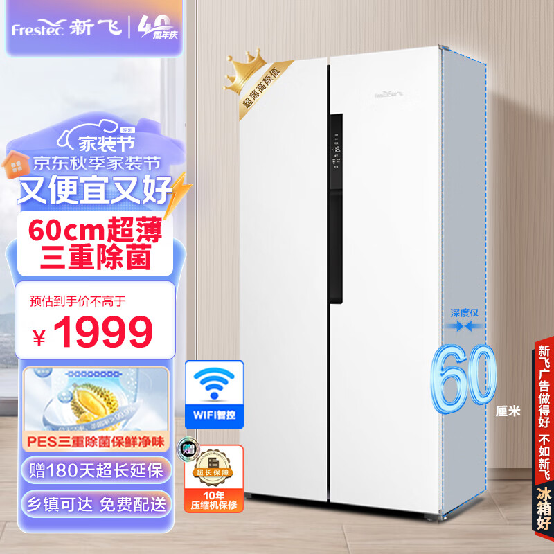 新飞(Frestec)60cm系列450升超薄对开门双开门冰箱多维风冷无霜三重除菌电冰箱 BCD-450WK9HT素雪白价格:1999.00元!