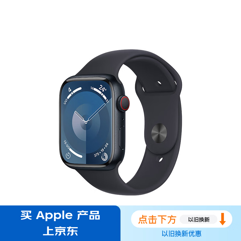 Apple/苹果 Watch Series 9 智能手表GPS+蜂窝款45毫米午夜色铝金属表壳午夜色运动型表带S/M MRP53CH/A价格:3999.00元!