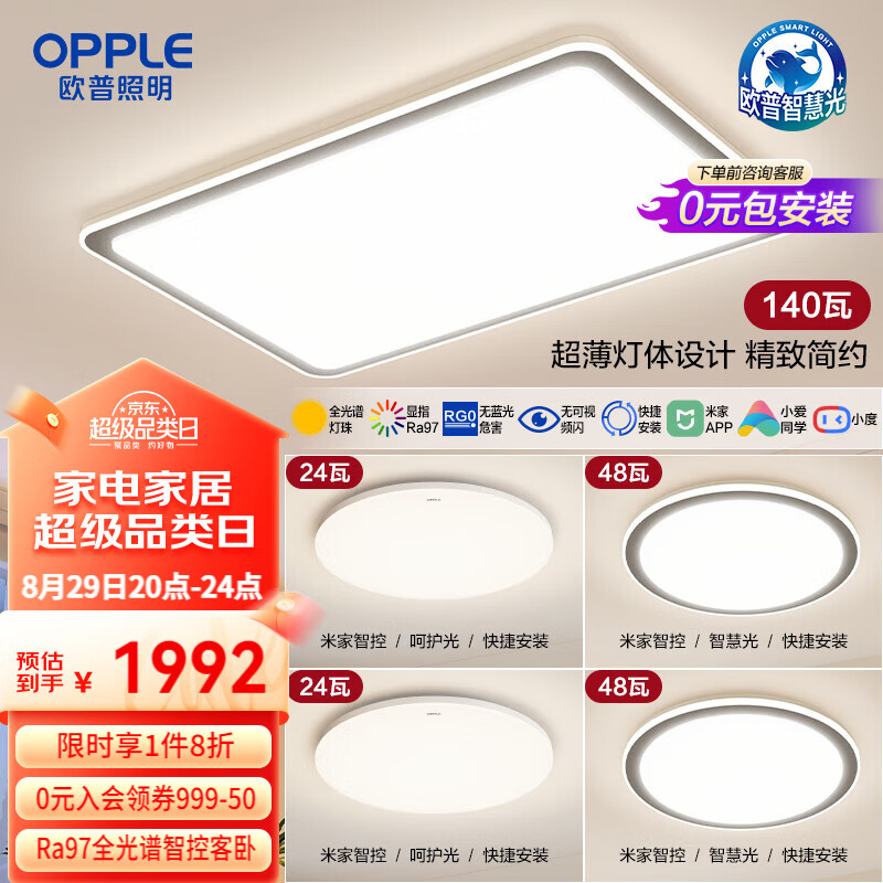 欧普(OPPLE)护眼全光谱吸顶灯客厅大灯智能LED照明简约现代卧室套餐9 智慧光价格:2490.00元!