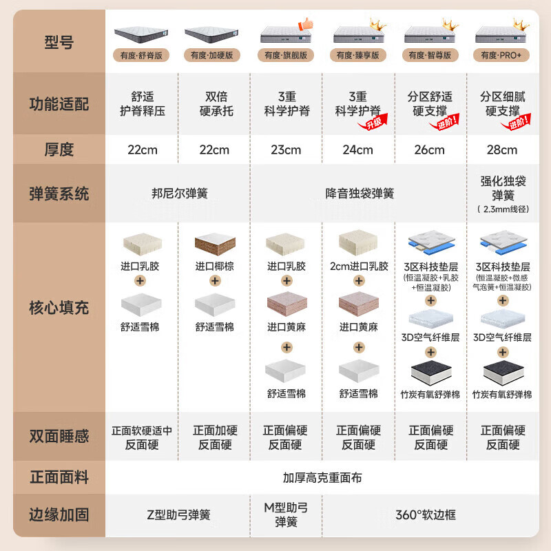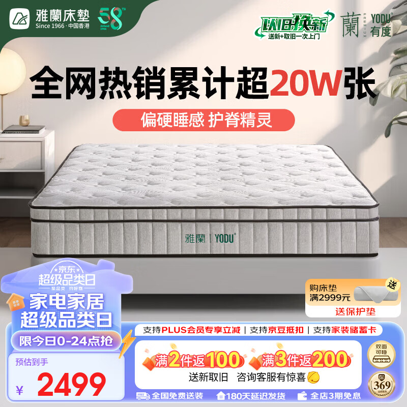 雅兰乳胶床垫偏硬家用天然黄麻独立弹簧床垫 有度旗舰版 1.8*2米价格:4499.00元!