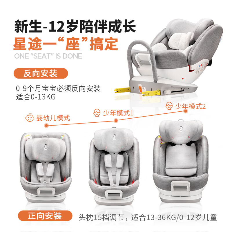 袋鼠爸爸 0-12岁全龄360度旋转isofix接口儿童座椅 星途元气粉价格:1398.00元!