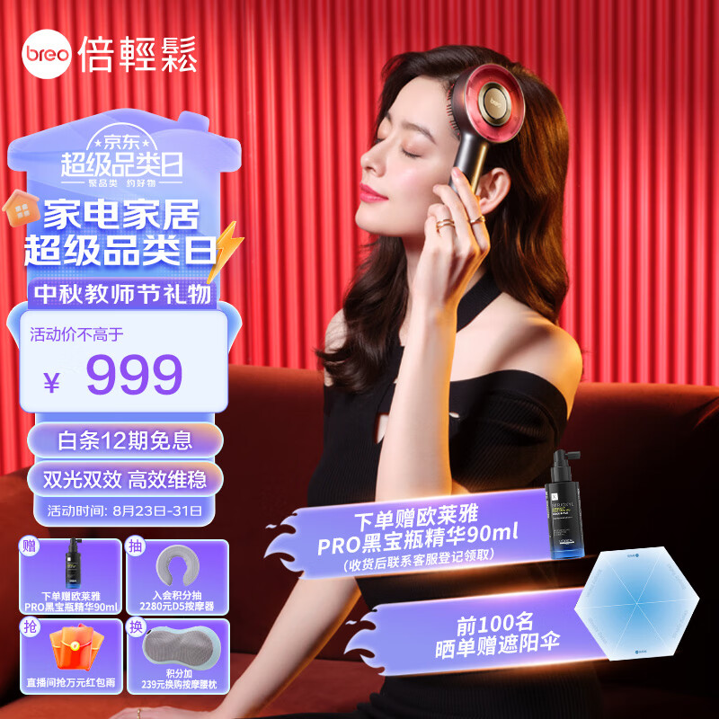 倍轻松Scalp3S头皮智能按摩梳深空黑 红光护发滋养护头皮头部按摩仪 中秋教师节礼物价格:999.00元!