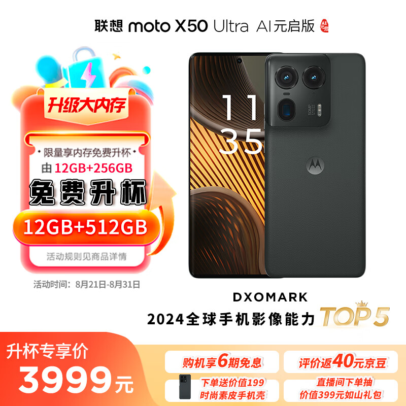 摩托罗拉 联想moto X50 Ultra 100倍潜望超级变焦 一体化机身 5G手机 AI元启版 12GB+512GB 远黛墨价格:3999.00元!