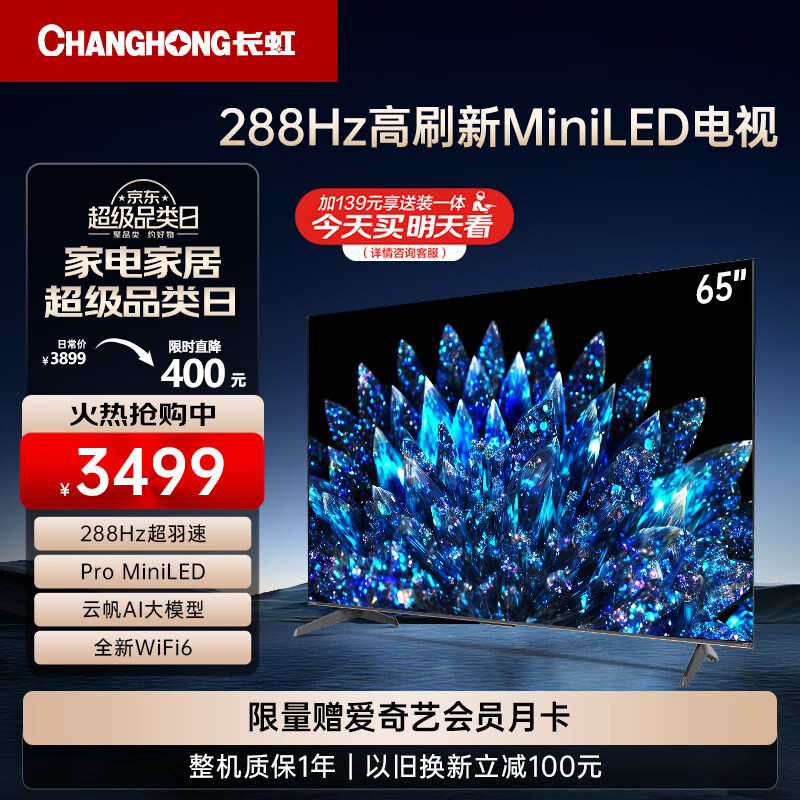 长虹电视65D8 MAX 65英寸288HzMiniLED游戏电视 4+64GB 4K超高清智能平板液晶LED电视机以旧换新价格:3499.00元!