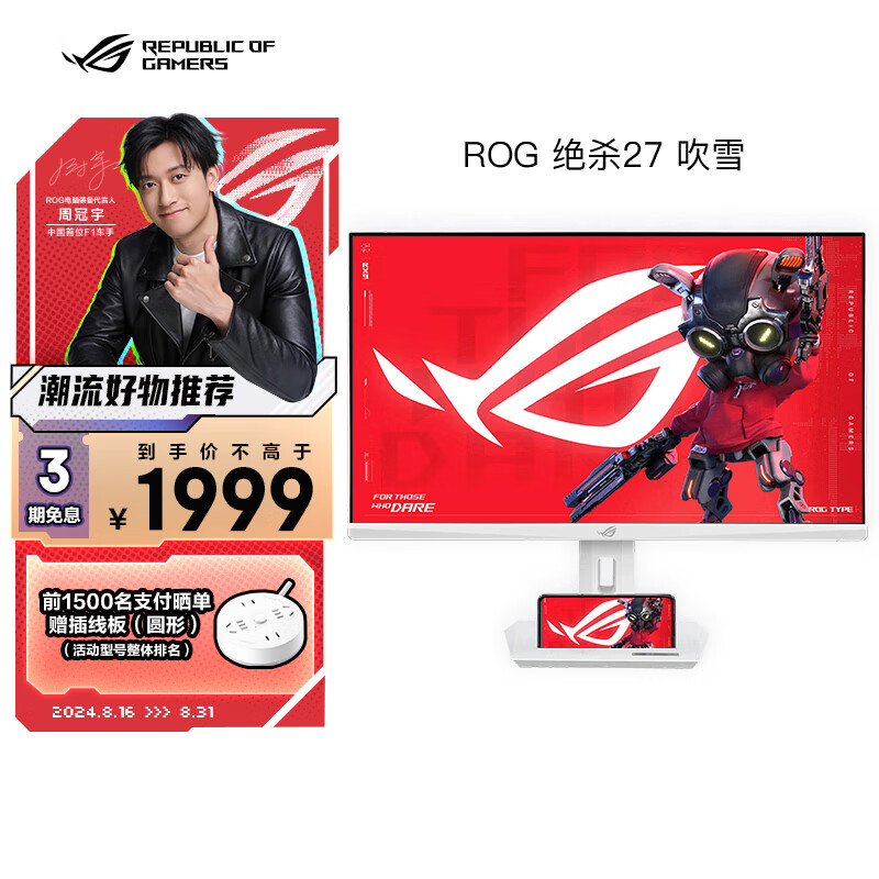 华硕ROG XG27ACS-W绝杀 27英寸显示器2K电竞 144Hz显示器原生180Hz高刷FastIPS 1ms响应G-SYNC HDR400价格:1999.00元!