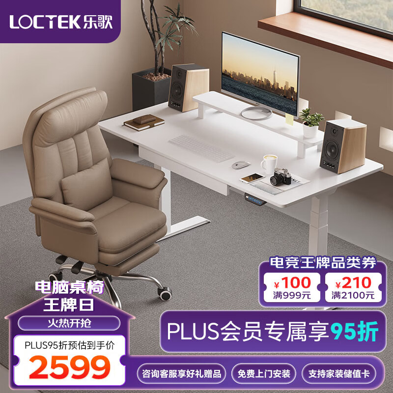 乐歌电动升降桌电脑桌站立办公学习桌写字书桌 E5-N/1.6m雅白色套装价格:3052.00元!