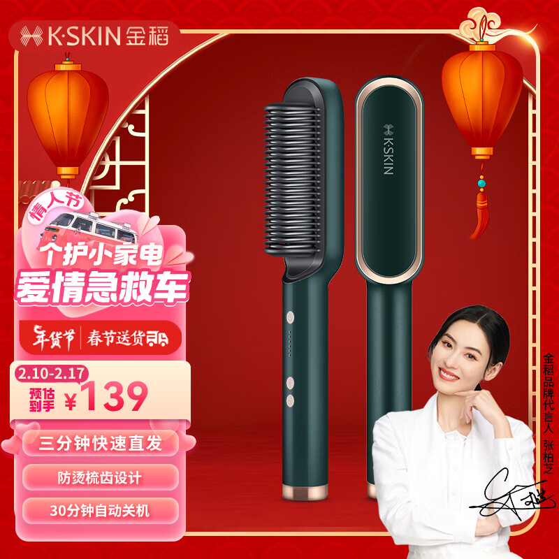 金稻直发梳夹板卷发棒内扣直板夹造型梳子 三分钟快速造型30秒速热恒温护发礼物女 KD380绿色 新年礼物价格:209.00元!