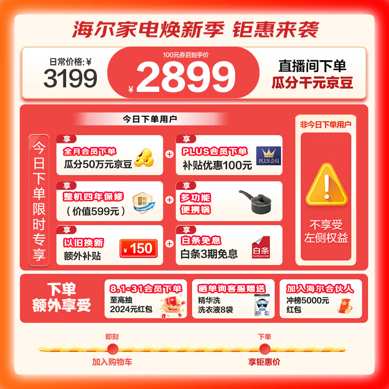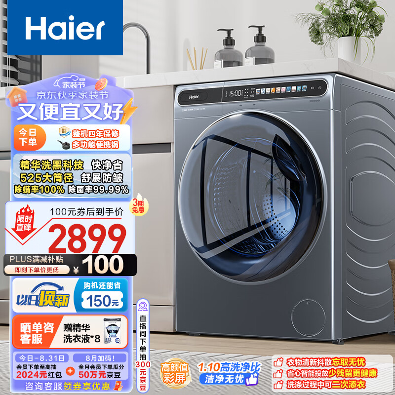 海尔(Haier)滚筒洗衣机全自动单洗 超薄家用10公斤大容量 金榜推荐 精华洗EG100MATESL59S 以旧换新 一级能效价格:2999.00元!