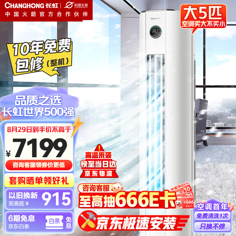 长虹大5匹新能效节能省电商用220V单相电冷暖立式家用柜机空调KFR-120LW/ZDTTW2+R2以旧换新价格:7199.00元!