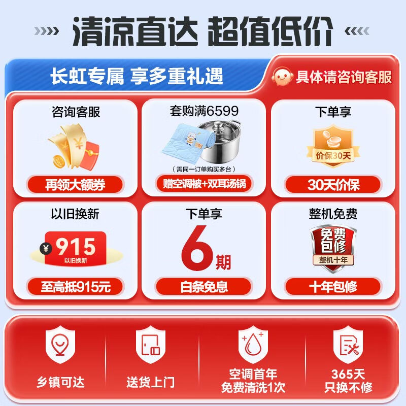 1、非常不错的空调品牌,性价比高,几个办公室都用长虹品牌,价格便宜也好用,质保6年不用担心售后问题,天这么热,这个价格非常合适