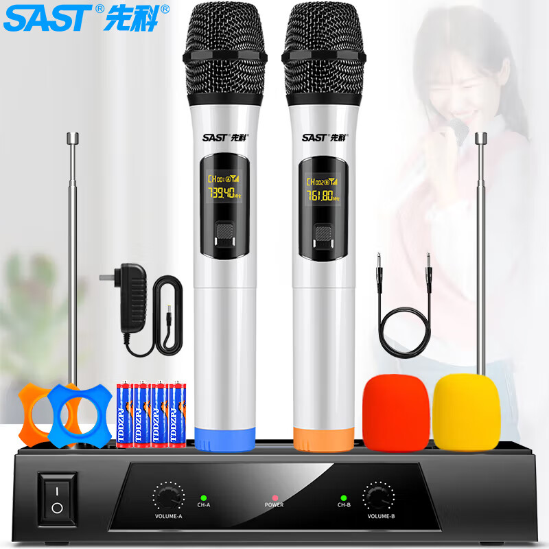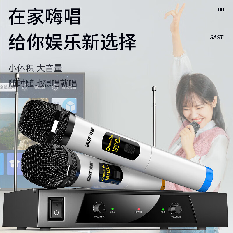 先科(SAST) OK-18 无线麦克风 一拖二无线话筒 家用KTV音响唱歌会议演讲舞台唱拉卡OK双手麦 黑价格:219.00元!