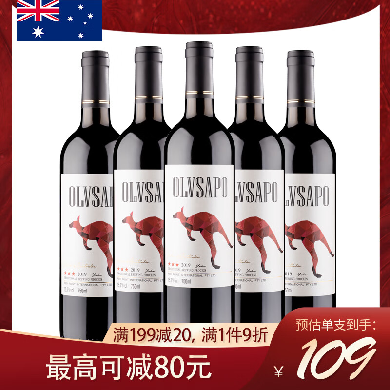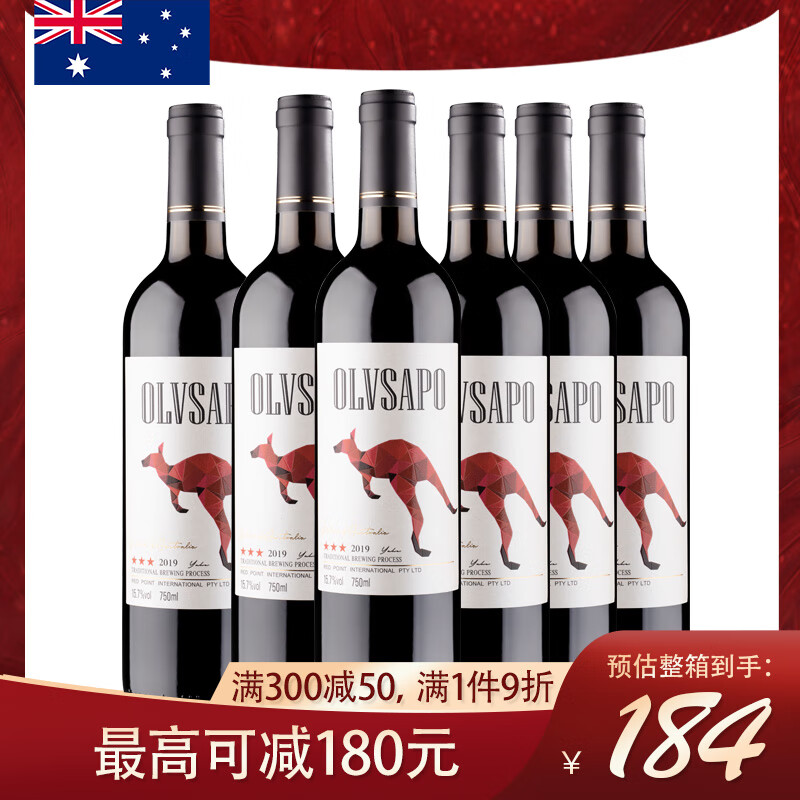 澳兰莎普澳大利亚干红葡萄酒750ML*6瓶整箱进口葡萄酒年货节礼盒袋鼠红酒价格:189.00元!