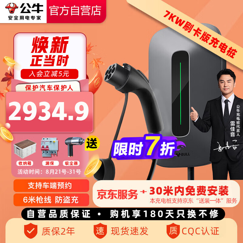 公牛新能源汽车交流充电桩适配于小米su7汽车比亚迪极氪特斯拉问界小鹏蔚来 7KW刷卡款 30米送装一体价格:4194.00元!