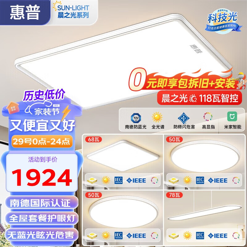 惠普全光谱护眼吸顶客厅灯米家现代简约灯具灯饰中山灯具全屋套餐R价格:3540.00元!