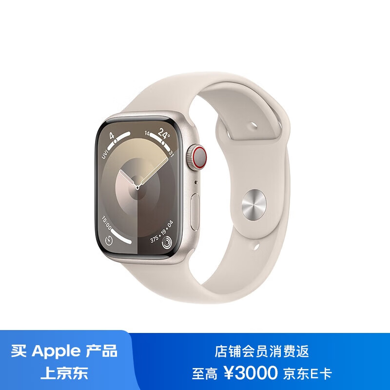 Apple Watch Series?9 (GPS);45?毫米星光色铝金属表壳;星光色运动型表带 - S/M MR963CH/A*企业专享价格:3199.00元!