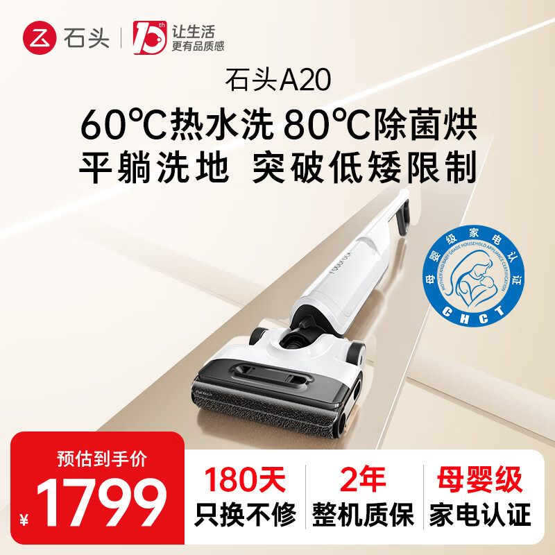 1、对比很久还是选了这款A20,石头大牌子品质有保障。洗地机质感很好,颜值很高,自带前助力很方便省力,续航也不错,电视柜床底都可以轻松躺平,从此解放双手,实现拖地自由哈哈~全封闭热水自清洁烘干,噪音小,家庭好帮手哈哈哈!还会推荐其他朋友买的。