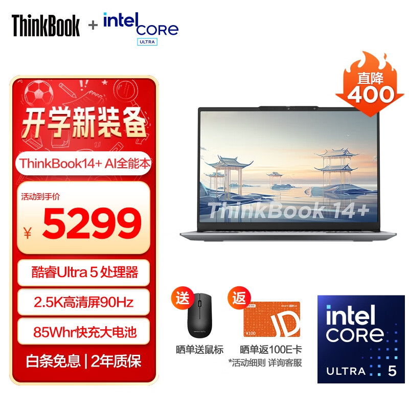 ThinkPad联想ThinkBook14+2024 AI轻薄全能本 全新英特尔酷睿Ultra标压处理器 14.5英寸商务办公笔记本电脑 Ultra5 125H 16G 512G 0DCD价格:5299.00元!
