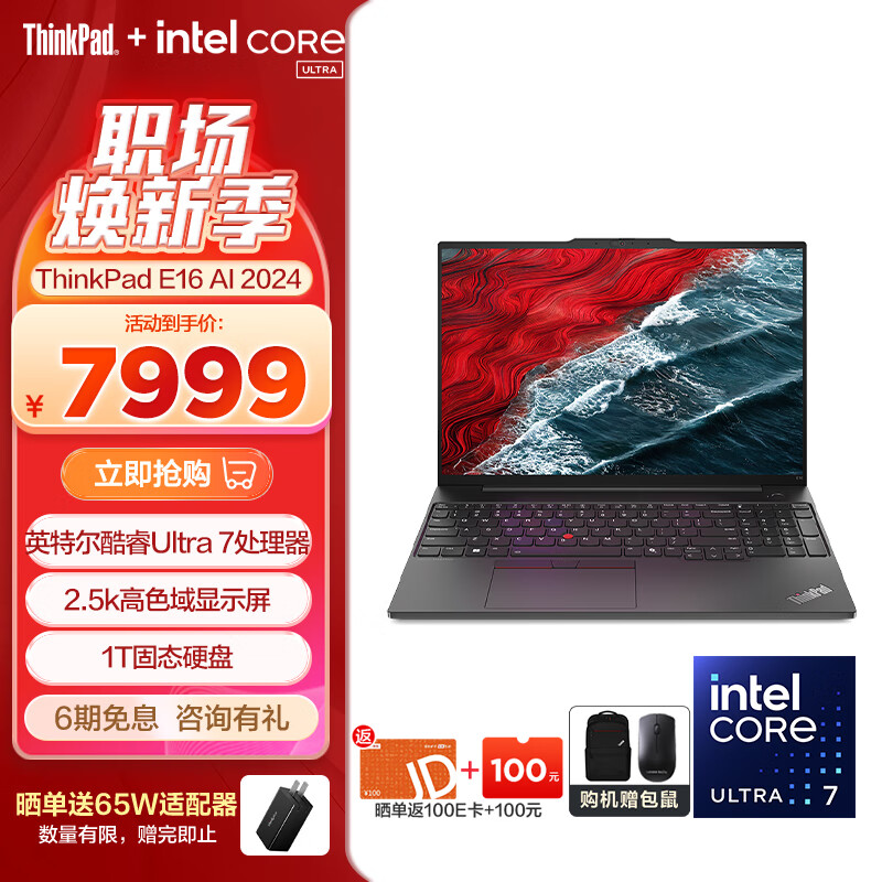 ThinkPad联想 E16笔记本电脑 E15升级版 16英寸商务办公学生轻薄本 AI 2024全新英特尔酷睿Ultra处理器可选 2024款全新Ultra 7 32G 1TB价格:8499.00元!