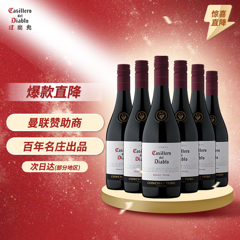 红魔鬼(Casillero del Diablo)黑皮诺干红葡萄酒750ml*6瓶整箱 智利进口 年夜饭聚餐红酒价格:389.00元!