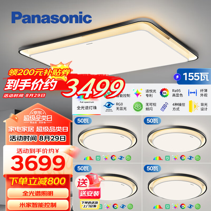 松下(Panasonic)吸顶灯全光谱护眼全屋米家智能led现代简约灯具泽巡四室一厅套装价格:4499.00元!