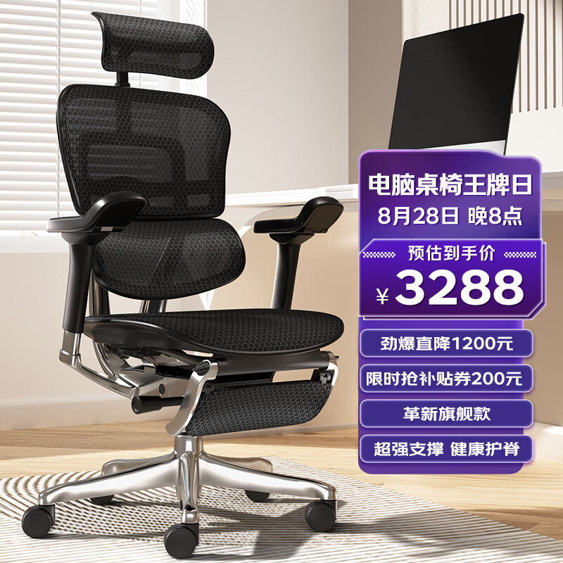 Ergonor保友金豪e2代高端人体工学椅电脑椅办公椅电竞椅子 黑色网+躺舒宝价格:4688.00元!