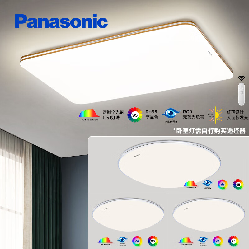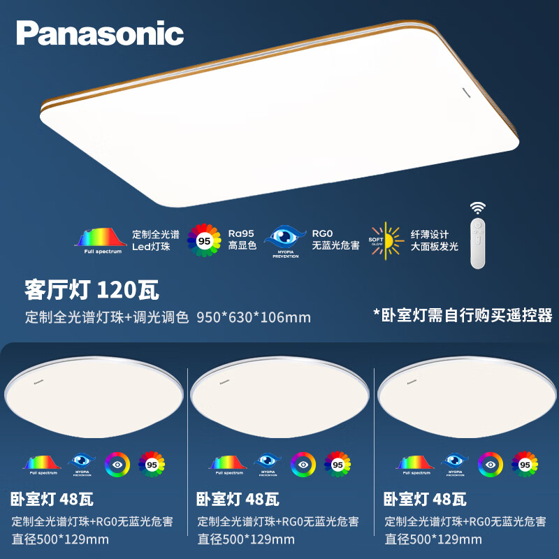 松下(Panasonic)吸顶灯 全光谱吸顶灯调光调色客厅灯 灯具套餐 三室一厅A价格:2399.00元!