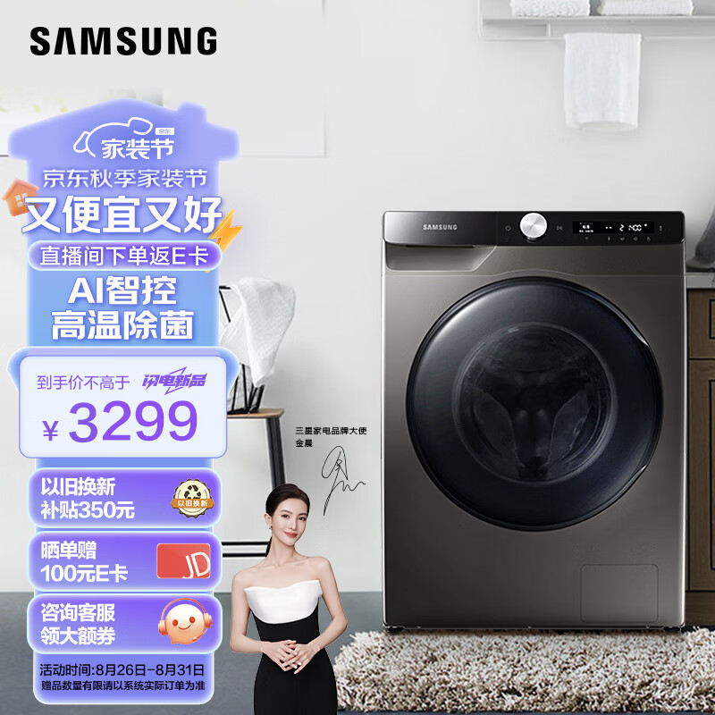 三星(SAMSUNG)全自动滚筒洗烘一体机5000T 10.5KG泡泡净 蒸汽除菌 1级能效 大桶径设计 冰晶灰 WD10T504DBX/SC价格:3278.00元!