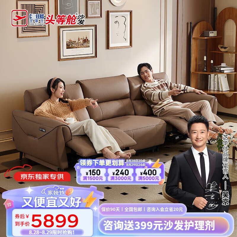 芝华仕(CHEERS)头等舱零靠墙真皮沙发复古电动功能直排轻奢客厅芝华士30268棕三A价格:6299.00元!