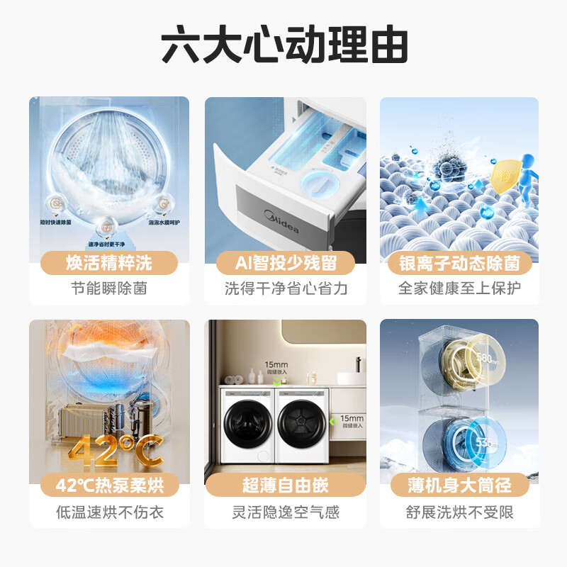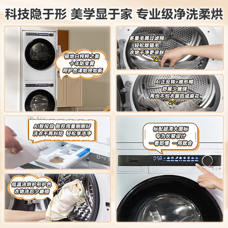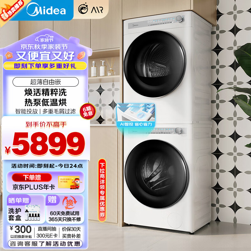 美的(Midea)洗烘套装 10公斤滚筒洗衣机全自动+热泵烘干机 智能投放 超薄机身 1.1洗净比MG100AIR1PLUS+AIR1价格:5899.00元!