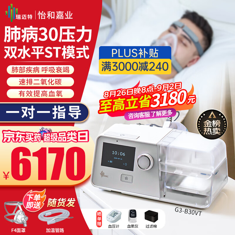 瑞迈特(怡和嘉业)G3 B30VT双水平呼吸机ST家用医用无创老人慢阻尘肺功能不全排二氧化碳潴留肺病呼吸器COPD价格:8850.00元!