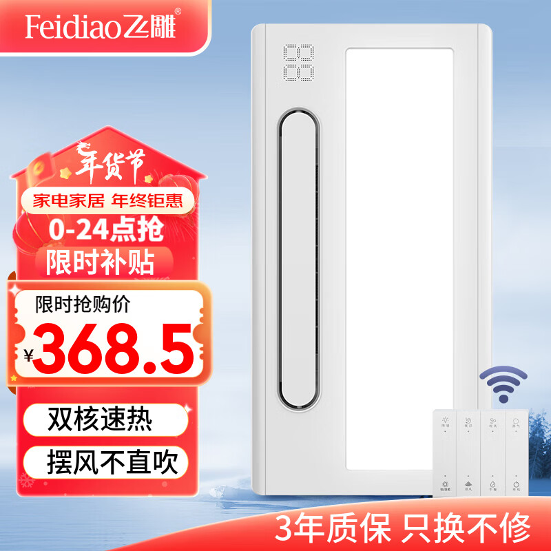 飞雕(FEIDIAO)空调式摆风风暖浴霸暖风照明排气一体浴室暖风机集成吊顶无线开关价格:368.50元!