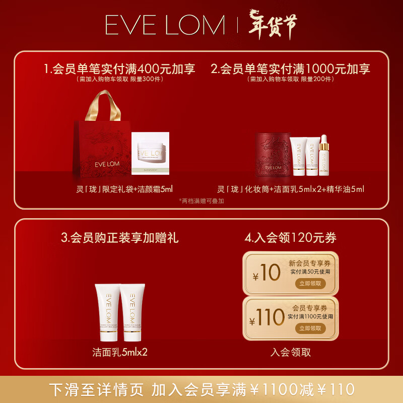 EVE LOM伊芙珑肖战推荐经典洁颜霜卸妆膏100ml 保湿洁面易乳化 新年礼物价格:680.00元!