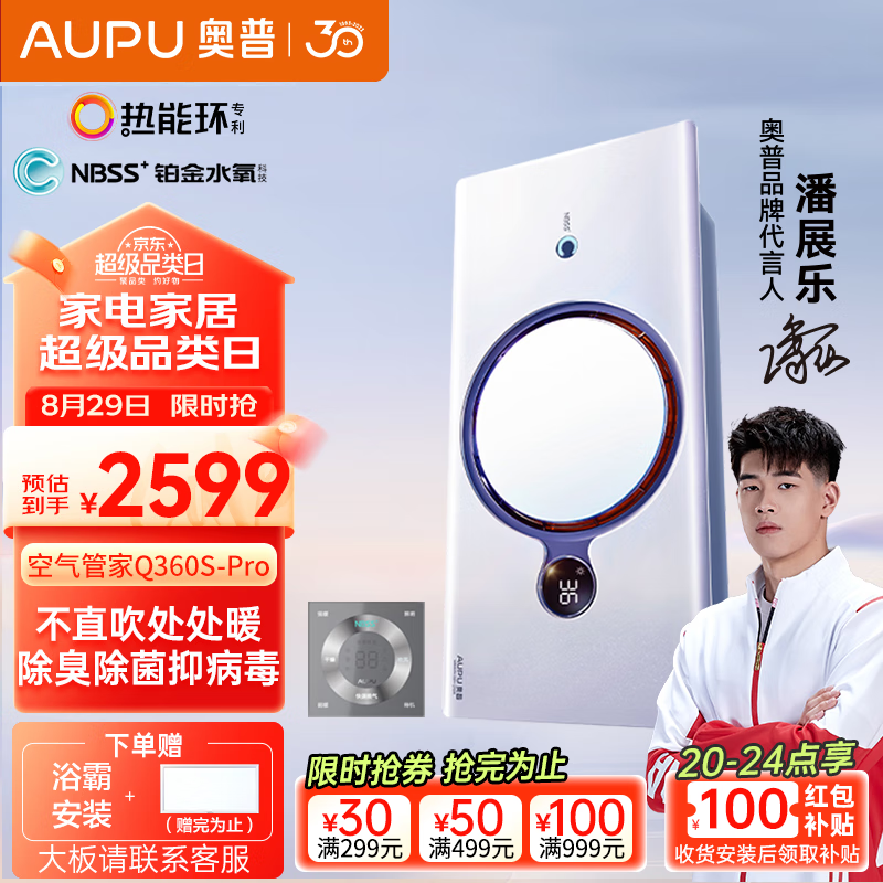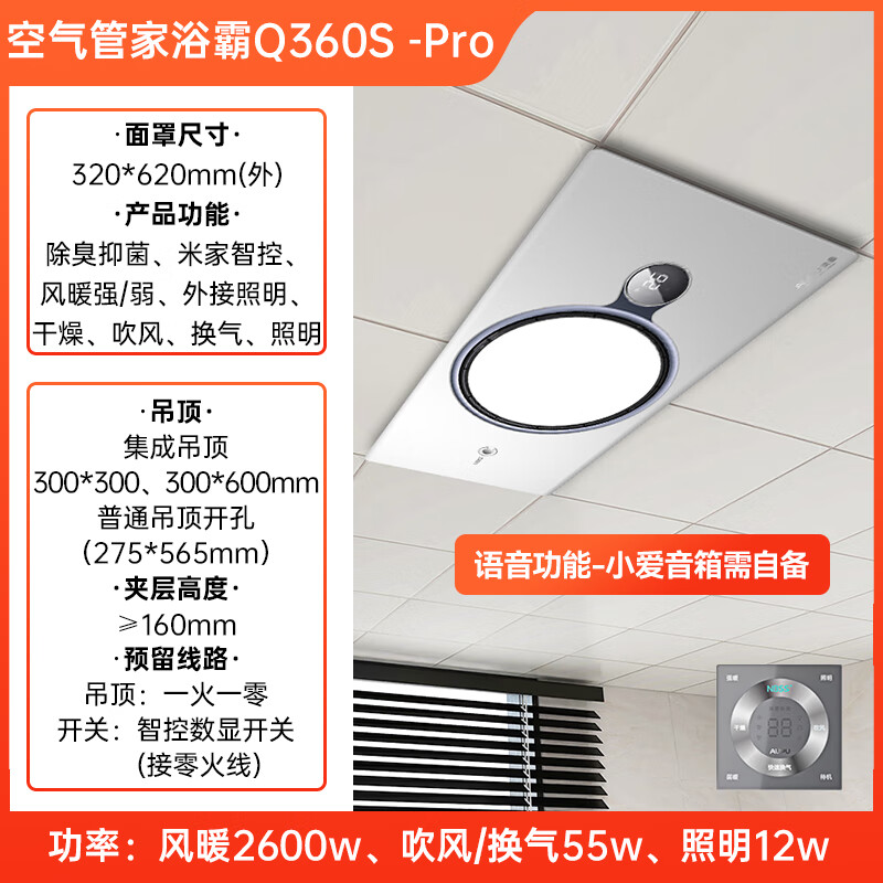 奥普(AUPU)浴霸Q360S-Pro空气管家热能环风暖铂金水氧数显 已接入米家价格:2999.00元!