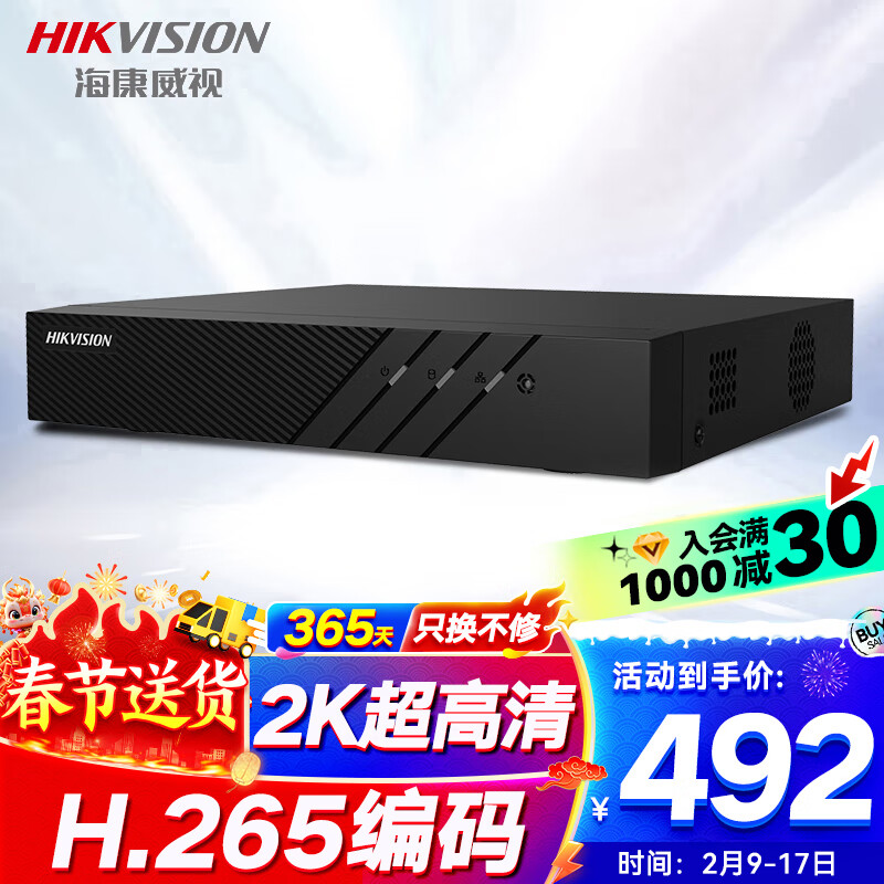 HIKVISION海康威视网络监控硬盘录像机 8路支持8T硬盘H.265编码1080P解码高清7808N-K1/C(D)价格:492.00元!
